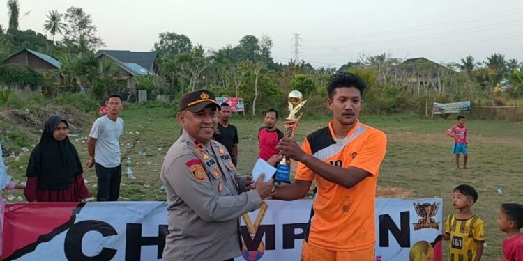 LHOKSEUMAWE – Kapolsek Muara Dua, Ipda Roni, SH menghadiri final turnamen bola kaki Liga Dusun Cup ke 15 Gampong Cot Girek Kandang, Kecamatan Muara Dua, Kota Lhokseumawe, Minggu (5/3/2023) sore.