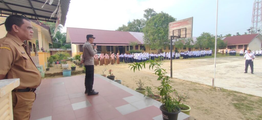 ACEH UTARA – Kapolsek Simpang Keuramat Ipda Darmansyah S.H saweu sikula dengan bertindak sebagai pembina upacara bendera di sekolah SMP Negeri 1 Simpang Keuramat, Senin (22/7/ 2024) pagi.