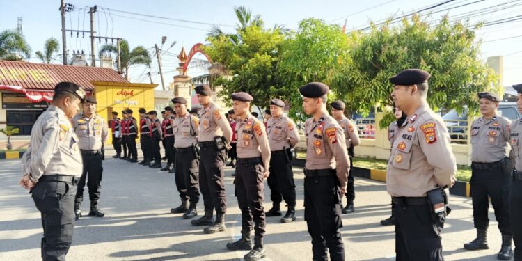 Lhokseumawe – Kasat Pamobvit Polres Lhokseumawe Iptu Mujiburrahmatullah, S.E menegaskan kepada seluruh personel agar selalu siaga dan sigap dalam melaksanakan tugas pengamanan objek vital. Hal tersebut disampaikan dalam apel fungsi yang berlangsung di Halaman Satya Haprabu Polres Lhokseumawe, Rabu (6/8/2025) pagi.