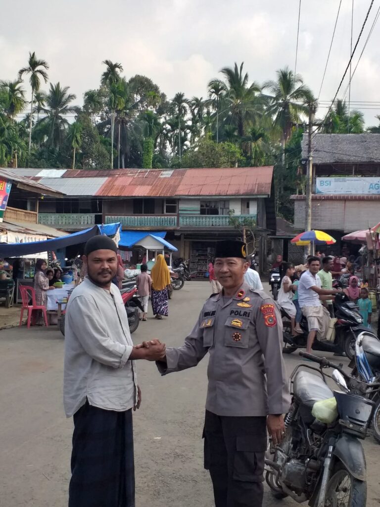 ACEH Utara – Kapolsek dan personel Polsubsektor Nisam Antara turun langsung ke Pasar Keude SP Rambong untuk berinteraksi dengan warga menjelang waktu berbuka puasa. mereka hadir untuk memberikan pesan kamtibmas dan menyampaikan kehadiran polisi dalam menjaga ketertiban dan keamanan masyarakat, sabtu (23/3/2024) sore.