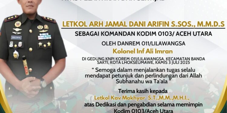 Keluarga Besar RSU. Cut Meutia Aceh Utara Mengucapkan Selamat dan Sukses Atas Pelantikan dan Sertijab Letkol ARH Jamal Dani S.Sos ., M.M.D.S Sebagai Dandim 0103/Aceh Utra