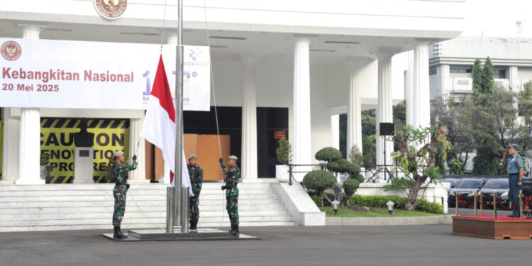Jakarta – Direktur Jenderal Perencanaan Pertahanan Kementerian Pertahanan (Dirjen Renhan Kemhan) Laksamana Muda TNI Supo Dwi Diantara memimpin upacara Hari Kebangkitan Nasional ke-117, di Kemhan, Jakarta, Selasa (20/5/2025). Upacara Hari Kebangkitan Nasional ini diikuti oleh seluruh pegawai Kementerian Pertahanan.