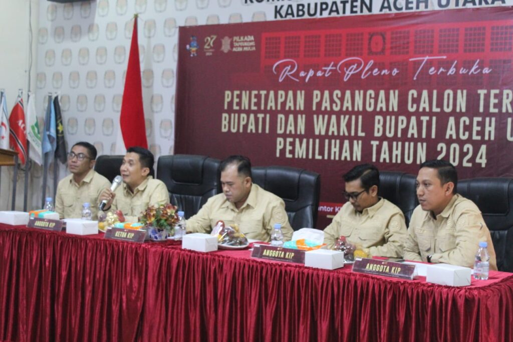 ACEH UTARA – Komisi Independen Pemilihan (KIP) Kabupaten Aceh Utara menggelar rapat pleno terbuka penetapan Bupati dan Wakil Bupati terpilih hasil Pemilihan Kepala Daerah (Pilkada) Tahun 2024.