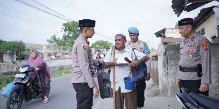 LHOKSEUMAWE – Kunjungi warga kurang mampu dan anak yatim, Kapolsek Dewantara, Ipda Adi Wirayuda Pratama, STrK bersama personel membagikan 40 nasi kotak menjelang waktu berbuka puasa, Rabu (12/4/2023) sore.