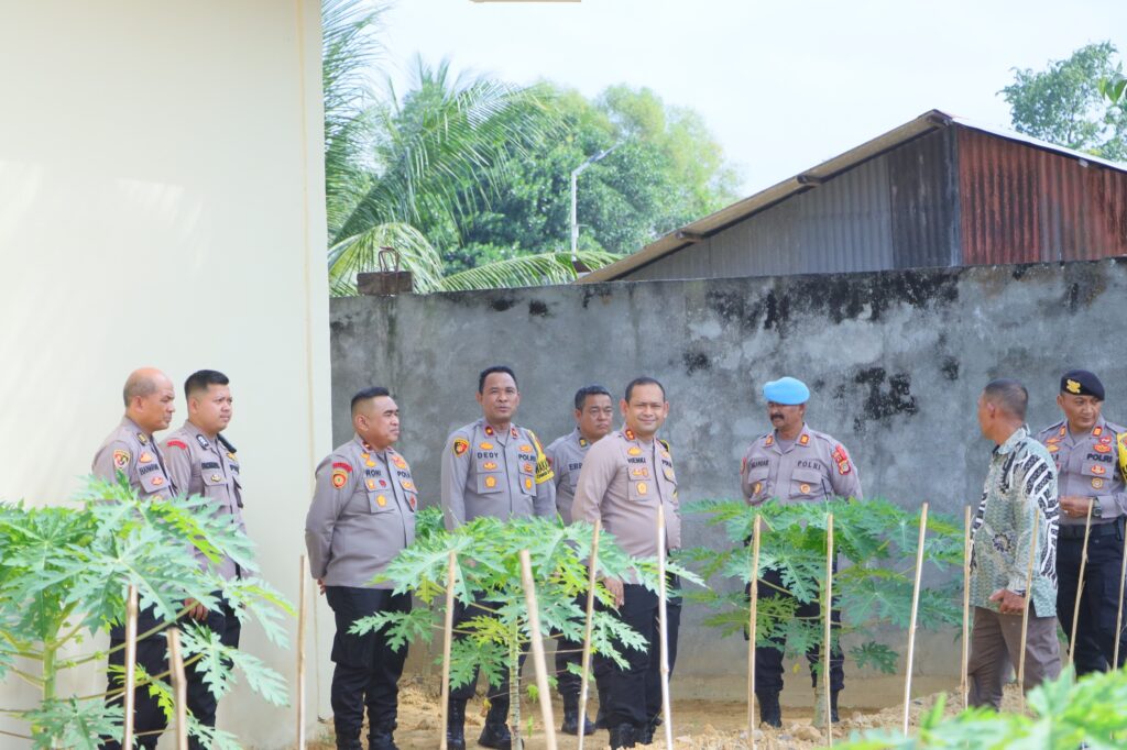 LHOKSEUMAWE – Kapolres Lhokseumawe, AKBP Henki Ismanto melakukan kunjungan kerja (kunker) ke Mapolsek Muara Dua, dalam kegiatan tersebut Kapolres juga meninjau lahan ketahanan pangan, Senin (29/1/2024).