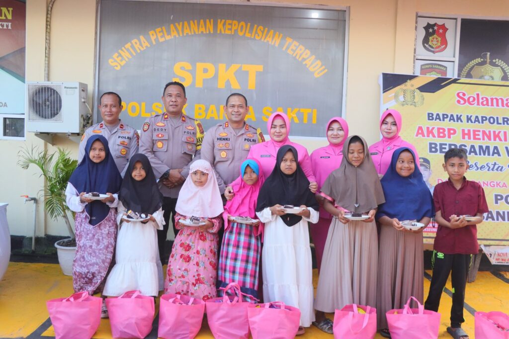 LHOKSEUMAWE – Kapolres Lhokseumawe, AKBP Henki Ismanto melakukan kunjungan kerja (kunker) ke Mapolsek Banda Sakti, dalam kegiatan ini kapolres juga menyerahkan bingkisan kepada anak yatim, Jumat (26/1/2024).