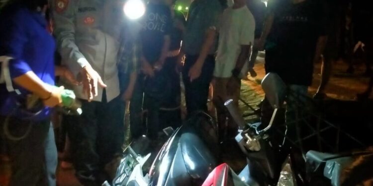 LHOKSEUMAWE – Personel Polsek Muara Satu mendatangi TKP laka tunggal di lokasi pembuatan parit badan jalan di kawasan Blang Pulo, Kecamatan Muara Satu, Kota Lhokseumawe, Rabu (5/4/2023) malam.