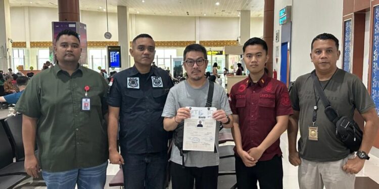 Pekanbaru: Kantor Imigrasi Kelas I Tempat Pemeriksaan Imigrasi (TPI) Pekanbaru, mendeportasi seorang Warga Negara Asing (WNA) asal Singapura. Pria berinisial KK (46) dideportasi melalui Bandar Udara Internasional Sultan Syarif Kasim II Pekanbaru ke negara asalnya pada Minggu (30/3/2025).