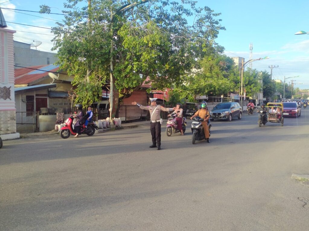 LHOKSEUMAWE, dalam rangka melancarkan arus lalu lintas dan mengantisipasi kemacetan di jam-jam sibuk pagi hari, Satuan Lalu Lintas (Sat Lantas) Polres Polres Lhokseumawe Polda Aceh melaksanakan kegiatan Strong Point pagi, Kegiatan ini bertujuan untuk mengatur arus lalu lintas dan mencegah terjadinya kemacetan dan meminalisir Laka di titik-titik strategis persimpangan di Wit Kota Lhokseumawe, Jum at 16/08/2024.pagi.