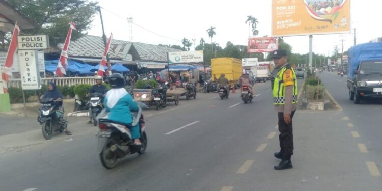 LHOKSEUMAWE, Dalam upaya untuk meningkatkan kelancaran arus lalu lintas dan memastikan keamanan masyarakat di sekitar area pasar pagi Batuphat, Polsek Muara Satu Polres Lhokseumawe Polda Aceh hari ini melaksanakan kegiatan “Strong Point Pagi” di lokasi pasar pagi Desa Batuphat Kec. Muara Satu Kota Lhokseumawe, 08/08/2024 pagi.