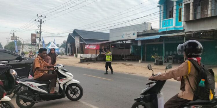 ACEH UTARA , 06 Februari 2025 – Polsek Dewantara Polres Lhokseumawe Polda Aceh, melaksanakan pengaturan arus lalu lintas di sejumlah titik strategis sekitar sekolah-sekolah, seperti simpang Desa Paloh Pada jalur menuju ke sekolah, guna memastikan kelancaran dan keamanan siswa yang sedang menuju sekolah. Kegiatan ini dilakukan setiap pagi, mulai pukul 07.00 hingga 08.00 WIB, untuk menghindari kemacetan serta meminimalisir potensi kecelakaan di jalan raya.