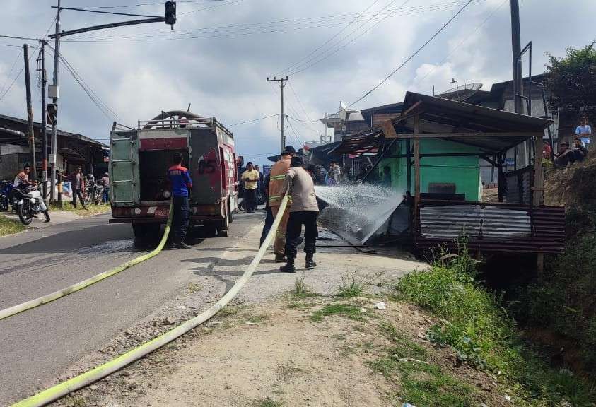 RODELONG-.. Lapak jualan bersama milik Lajismu terbakar di Buntul Kecamatan Permata Kabupaten Bener Meriah, Selasa (4/3/2025) pukul 15.10 WIB.