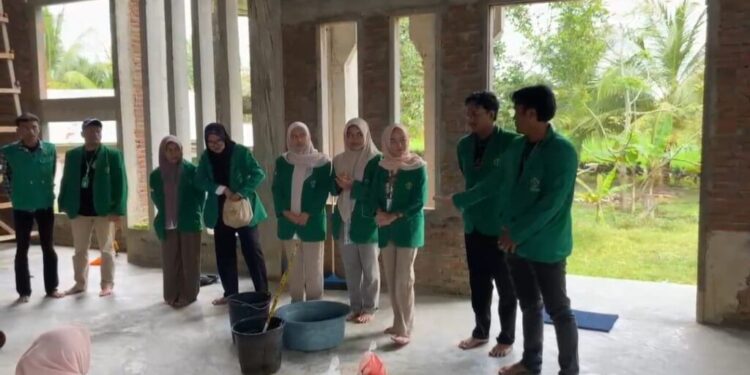 ACEH UTARA- Kelompok 257 Mahasiwa Universitas Malikussaleh yang sedang melakukan Kuliah Kerja Nyata (KKN) yang sedang melakukan pengabdian di di Gampong Alue Ie Tarek, Kecamatan Baktiya, Kabupaten Aceh Utara, mengajarkan kaum perempuan didesa tersebut cara membuat sabun cuci piring, sebagai bentuk pemberdayaan ekonomi masyarakat desa.