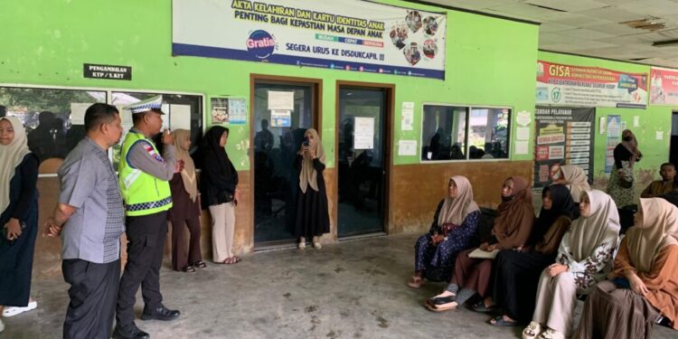 Memanfaatkan kesempatan antrian masyarakat di Disdukcapil Aceh Utara, petugas menyampaikan berbagai materi. Di antaranya terkait kewajiban penggunaan helm, kelengkapan surat kendaraan, hingga pentingnya mematuhi rambu-rambu lalu lintas.
