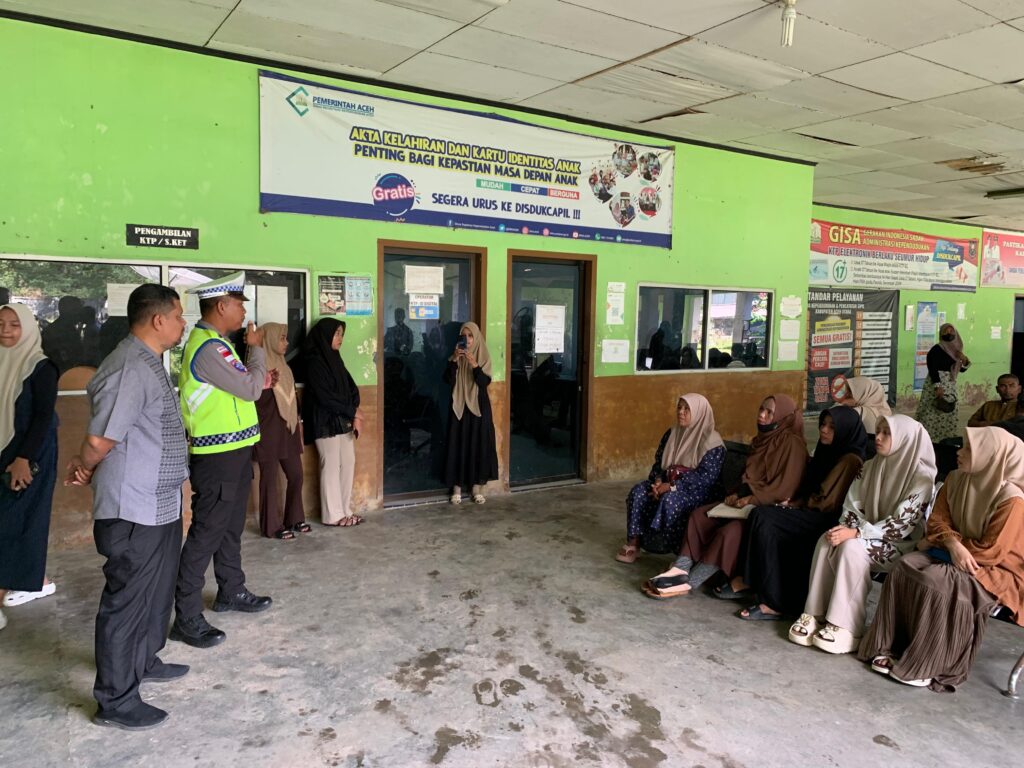 Memanfaatkan kesempatan antrian masyarakat di Disdukcapil Aceh Utara, petugas menyampaikan berbagai materi. Di antaranya terkait kewajiban penggunaan helm, kelengkapan surat kendaraan, hingga pentingnya mematuhi rambu-rambu lalu lintas.