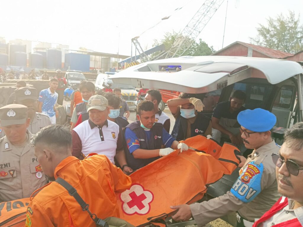 “TNI-Poiri bersama tim SAR bersama warga setempat mengevakuasi korban ke dermaga pelabuhan umum Krueng Geukueh. Jenazah kemudian dibawa ke rumah duka di Desa Padang Sakti, Kecamatan Muara Satu, Kota Lhokseumawe menggunakan ambulans PMI, atas permintaan keluarga korban” pungkas Kapolsek