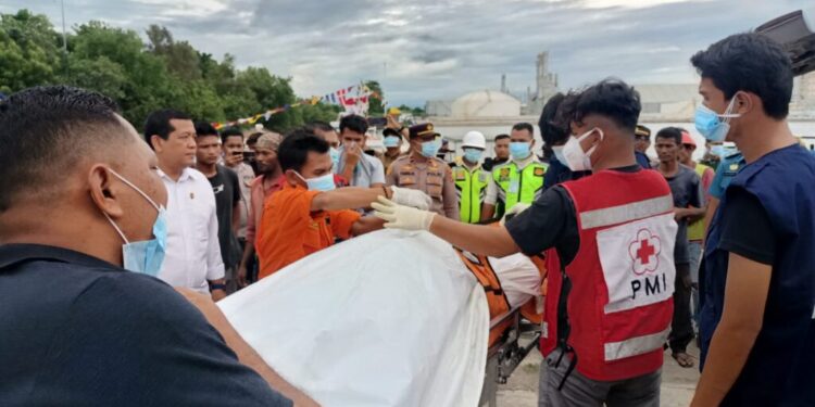 LHOKSEUMAWE – Sejumlah anggota Polri bersama TNI, SAR dsn PMI setempat melakukan evakuasi jenazah seorang laki-laki tanpa identitas di Pelabuhan Umum Krueng Gekueh, Kecamatan Dewantara, Kabupaten Aceh Utara, Senin (19/8/2024) sekitar pukul 12.30 WIB.