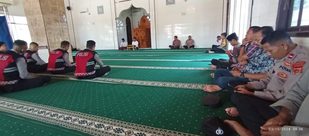 LHOKSEUMAWE – Dalam rangka upaya meningkatkan keimanan dan ketaqwaan kepada Allah SWT serta memastikan kesinambungan dalam melaksanakan tugas, di Polres Lhokseumaewe menyelenggarakan kegiatan Binrohtal berupa Tausyiah sirama rohani dan Doa Bersama di Mesjid Babuttaqwa, Polres Lhokseumawe dengan tujuan menginspirasi dan memotivasi personil agar tetap istiqomah dalam menjalankan tugas sehari-hari, Kamis, 03/10/ 2024.pagi.