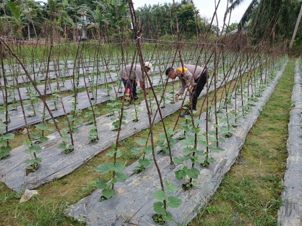 Bripka Busra Anagabita, Bhabinkamtibmas Polsek Manyak Payed, memimpin pengecekan dengan fokus pada ketersediaan lahan produktif, jenis tanaman yang dibudidayakan, hingga hasil panen yang diharapkan. Dalam kesempatan itu, Bapak Selamet menyampaikan bahwa lahan pertanian miliknya saat ini ditanami mentimun, yang memiliki potensi besar untuk mendukung kebutuhan pangan lokal.