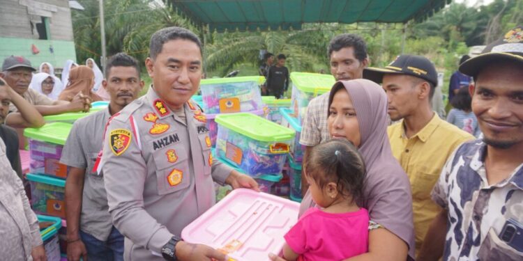 LHOKSEUMAWE – Deru banjir yang melanda Aceh Utara bukan hanya merendam rumah dan sawah, tapi juga menghapus satu dusun Lhok Pungki, Desa Gunci, Kec. Sawang Aceh Utara. Sebanyak 84 kepala keluarga kehilangan tempat tinggal, menyisakan tanah retak dan alur sungai baru yang membelah bekas permukiman. Di tengah situasi ini, rombongan Kapolres Lhokseumawe AKBP Dr. Ahzan, S.H., S.I.K., M.S.M., M.H. menembus medan berat untuk melihat langsung kondisi warga pada Selasa (9/12/2025).