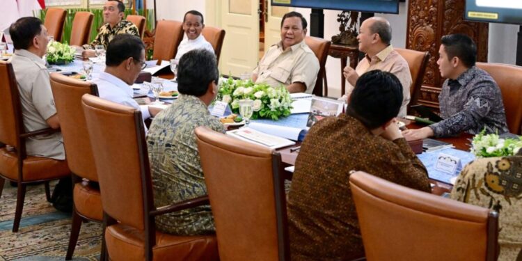 Jakarta – Menteri Pertahanan RI Sjafrie Sjamsoeddin bersama sejumlah menteri dan Satgas Hilirisasi menghadiri rapat terbatas (ratas) yang dipimpin oleh Presiden RI Prabowo Subianto, di Istana Merdeka, Jakarta, pada Jumat, (23/5/2025). Rapat tersebut dilaksanakan guna membahas percepatan proyek hilirisasi nasional dan tindak lanjut terhadap proyek prioritas hilirisasi yang mencakup berbagai sektor strategis.