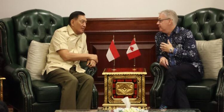 Jakarta – Menteri Pertahanan RI Sjafrie Sjamsoeddin menerima kunjungan Duta Besar (Dubes) Kanada untuk Indonesia H.E. Jess Dutton di kantor Kementerian Pertahanan, Jakarta, Kamis (17/4/2025).
