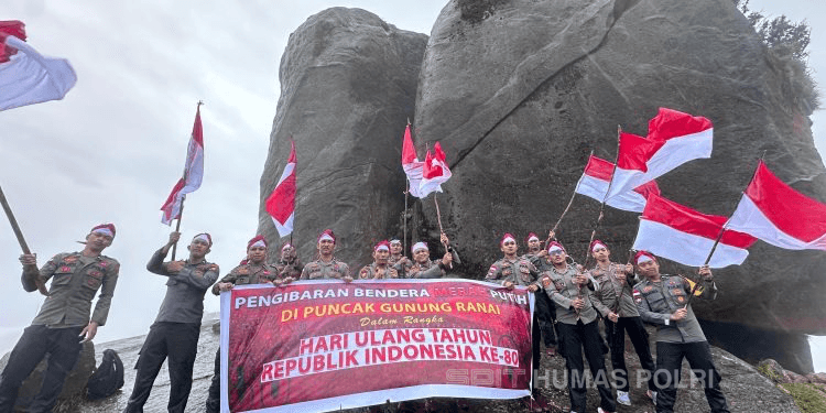 Natuna – Semangat persatuan dan cinta tanah air berkobar dari ketinggian 1.035 meter di atas permukaan laut, ketika bendera Merah Putih berkibar gagah di puncak Gunung Ranai, Natuna, Minggu, 10 Agustus 2025