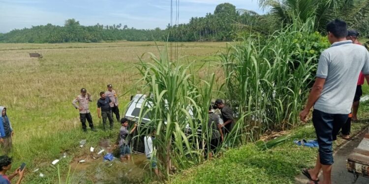 Sesampainya di TKP, kata Kapolsek, diduga lelah dan mengantuk supir hilang kendali sehingga menyebabkan mobil terjun ke sawah warga yang berada di pinggir jalan. “Akibat kejadian ini, satu penumpang, yakni Amelia mengalami luka ringan tangan terkilir,” ujarnya.