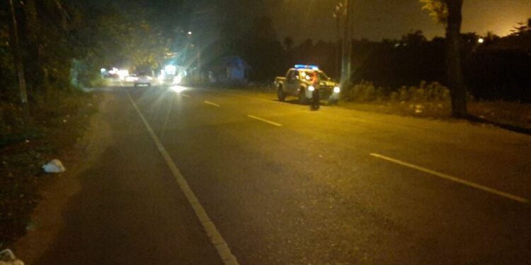 LHOKSEUMAWE – Polantas Lhokseumawe melaksanakan patroli malam di titik rawan terjadinya kecelakaan lalu lintas jalan Medan – Banda Aceh, Blang Panyang, Kecamatan Muara Satu, Kota Lhokseumawe, Minggu (16/4/2023) malam.