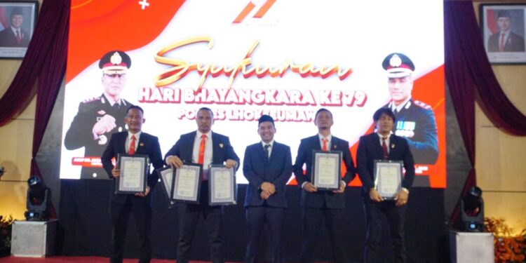 Lhokseumawe – Dalam rangka peringatan Hari Bhayangkara ke-79, Polres Lhokseumawe menggelar acara syukuran dan pemberian penghargaan kepada personel berprestasi, pemenang lomba, serta purnawirawan dan warakawuri di Gedung Serbaguna Polres Lhokseumawe, Selasa pagi (1/7/2025).