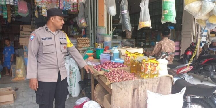 LHOKSEUMAWE – Monitoring stok sembako pasca lebaran, Personel Polsek Samudera, Polres Lhokseumawe blusukan ke sejumlah pedagang di pasar tradisional dan toko kelontong di wilayah tersebut, Kamis (4/5/2023).