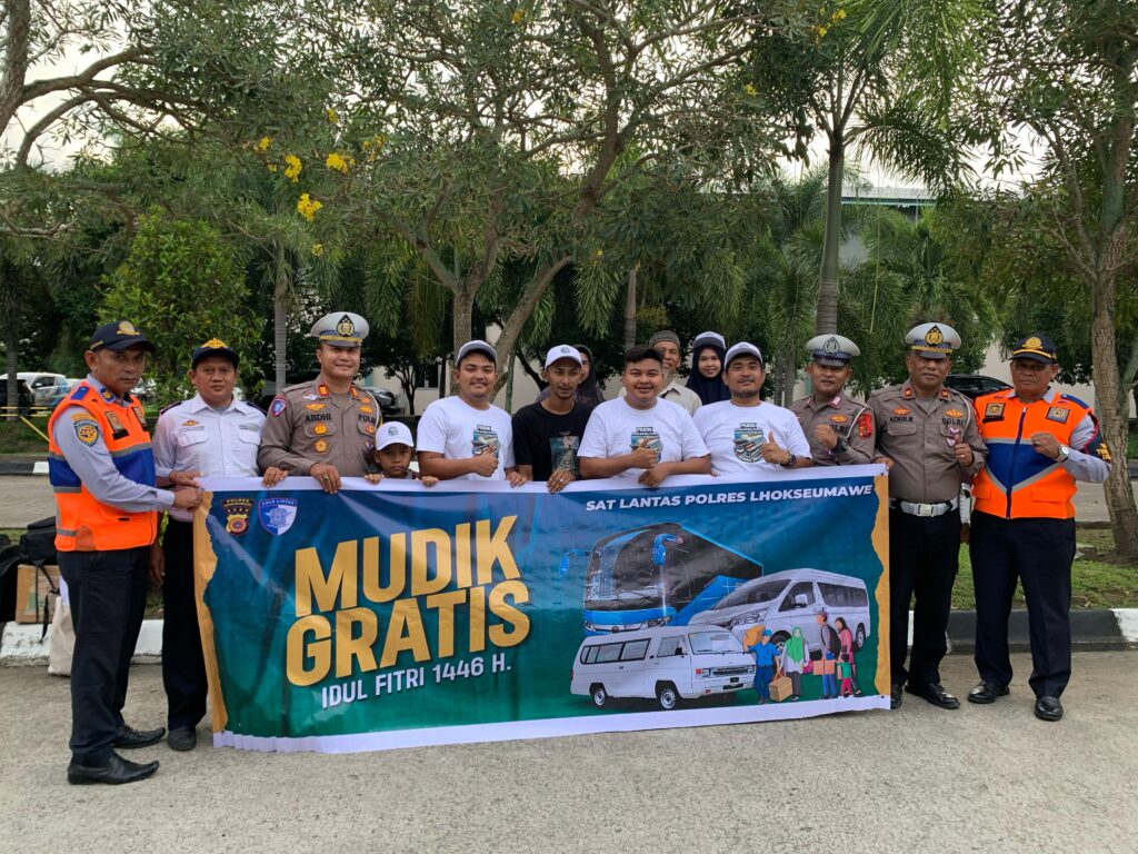 Lhokseumawe – Dalam upaya mendukung kelancaran arus mudik Lebaran, Satlantas Polres Lhokseumawe bersama PT. Pupuk Iskandar Muda (PIM) dan lintas sektoral menggelar program mudik gratis di halaman PT. PIM, Jumat (28/3/2025). Kegiatan ini diikuti oleh 100 pemudik dengan tujuan Kualanamu, Medan, Banda Aceh, dan Aceh Selatan.