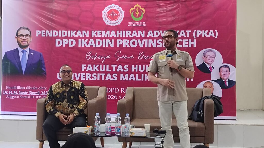 Hal tersebut disampaikan Nasir Djamil saat mengisi materi pada Pendidikan Kemahiran Advokat (PKA) yang diselenggarakan Ikatan Advokat Indonesia (IKADIN) DPD Aceh bekerja sama dengan Fakultas Hukum Universitas Malikussaleh (Unimal), di Sekretariat DPD RI, Banda Aceh.