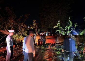 LHOKSEUMAWE – Personel Pamapta Polres Lhokseumawe bergerak cepat menangani insiden tumbangnya satu batang pohon besar yang menutup badan Jalan Medan–Banda...