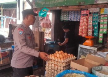 LHOKSEUMAWE - Anggota Polsek Muara Dua melakukan patroli rutin antisipasi gangguan Kamtibmas dan pengecekan stok sembako di pasar Keude Cunda,...