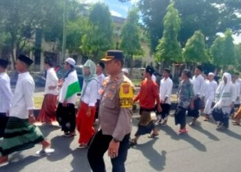 LHOKSEUMAWE – Puluhan personel Polres Lhokseumawe melakukan pengamanan aksi damai bela Palestina di depan Masjid Islamic Center, Kota Lhokseumawe yang...