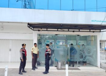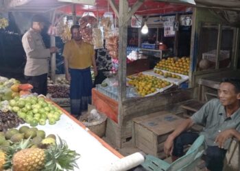 LHOKSEUMAWE - Personel Polsek Nisam, Polres Lhokseumawe melakukan patroli di area swalayan di Kecamatan Nisam, Aceh Utara, wilayah hukum Polres...
