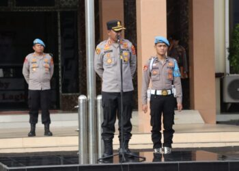 Lhokseumawe – Kapolres Lhokseumawe, AKBP Dr. Ahzan, S.H., S.I.K., M.S.M., M.H., memimpin apel pagi di halaman Mapolres Lhokseumawe, Senin (20/10/2025)....