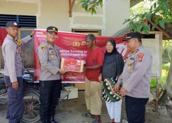 LHOKSEUMAWE - Kapolsek Banda Sakti, Ipda Arizal, SH menyerahkan bantuan sosial (bansos) kepada warga kurang mampu dan juru parkir di...
