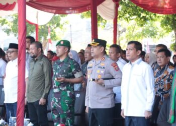 LHOKSEUMAWE - Kapolres Lhokseumawe, AKBP Henki Ismanto, SIK menghadiri acara pencanangan gerakan pembagian bendera merah putih oleh mendagri di Lapangan...
