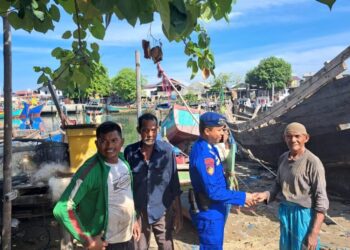 LHOKSEUMAWE - Personel Satpolairud Polres Lhokseumawe mengimbau masyarakat nelayan di kawasan pesisir dan PPI Pusong, Kecamatan Banda Sakti, Kota...