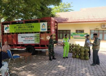 LHOKSEUMAWE - Personel Subsektor Banda Baro, Polres Lhokseumawe mengawal operasi pasar Elpiji 3 Kg, kegiatan tersebut berlangsung di kantor...