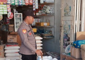 LHOKSEUMAWE - Porsonel Polsek Samudera secara rutin melakukan blusukan ke pasar tradisional dan kedai kelontong di Kecamatan Samudera, Aceh...