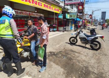LHOKSEUMAWE - Personel Satuan Lalu Lintas (Sat Lantas) Polres Lhokseumawe menindak pelanggar lalu lintas dengan sistem hunting (pelanggar kasat...