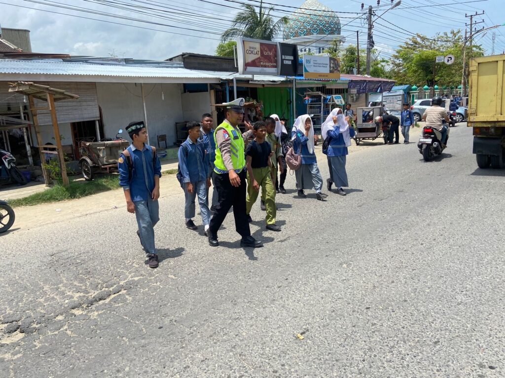 LHOKSEUMAWE - Tim Unit Reaksi Cepat (URC) Sat Samapta Polres Lhokseumawe menyambagi pedagang sayuran di pasar Pusong, Banda Sakti,...