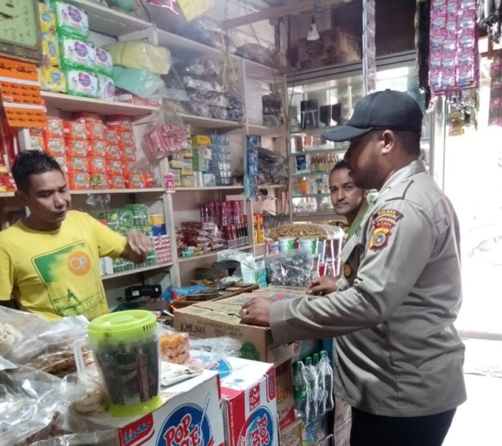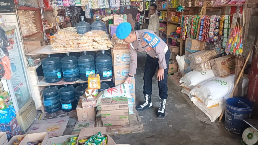 LHOKSEUMAWE - Dua personel Polsek Muara Batu blusukan ke pedagang kelontong untuk mengecek persediaan sembako di Kecamatan Muara Batu,...