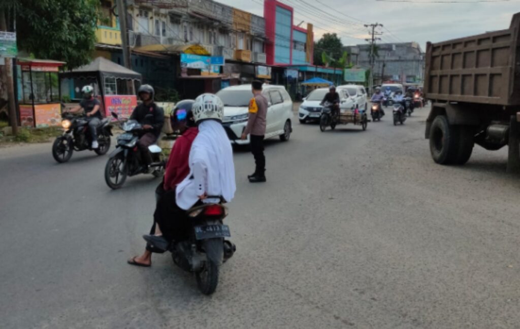 LHOKSEUMAWE - Personel Polsek Muara Dua melaksanakan strong poin di Simpang Elak, Desa Alue Awe, Kecamatan Muara Dua, Kota...