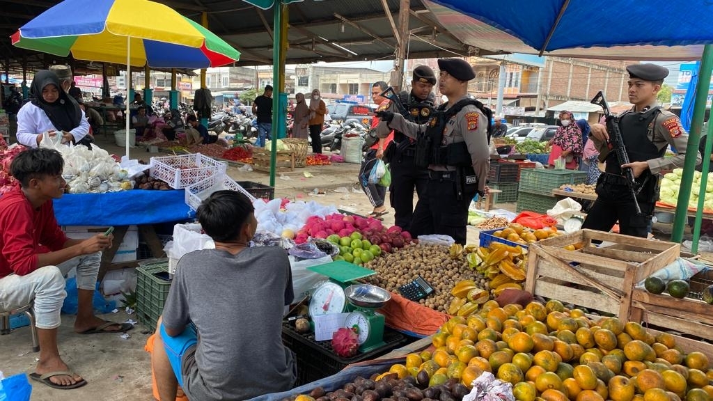 LHOKSEUMAWE - Personel Polsek Blang Mangat kembali turun ke pasar tradisional dan kedai kelontong di kecamatan Blang Mangat, Kota...