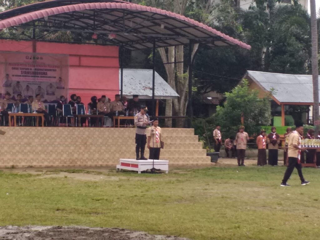LHOKSEUMAWE - Personel Sat Binmas Polres Lhokseumawe menjadi pembina upacara pada pembukaan pesta siaga dayah di Dayah Al Madinatuddiniyah...