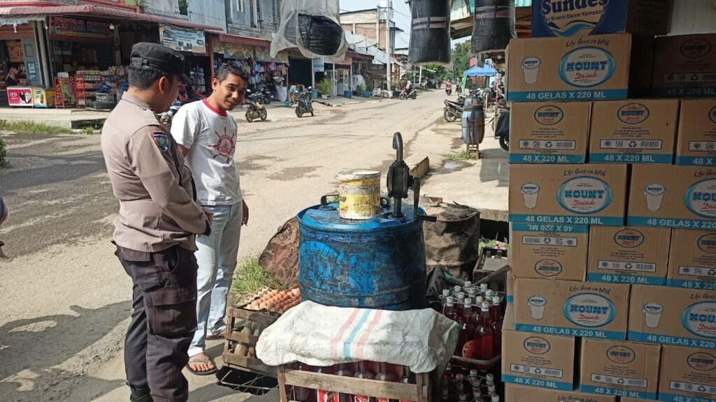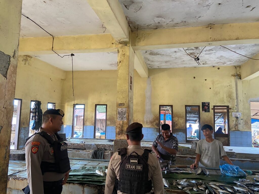 LHOKSEUMAWE - Personel Polsek Nisam memantau stok bawang dan barang sembako lainnya di pasar tradisional dan kedai kelontong di...